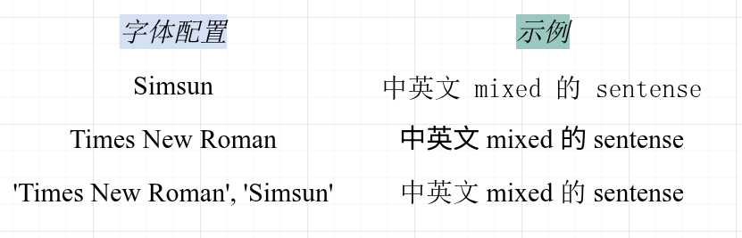 不过由于其样式设置仅支持一种字体, 经过测试使用 , 连接两种字体也无济于事: