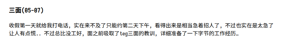 从字节离职后便准备开始着手找下一份实习, 时间线上也正好衔接暑期实习. 但从 3 月底离职后, 暑期实习的进展并不如意, 阿里系屡屡碰壁, 又被 TEG 三面无情 KPI 挂, 同时纠结了半天还是没有去非凸试试. 最后在四月底一个平淡的夜晚, 在我舅舅恰好来北京找我吃饭和谈论工作的过程中, 接到了专有云的电话, 问我要不要试试面试. 后续就是很顺利的一二三面.. 月底入职阿里云朝阳科技园区..